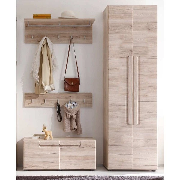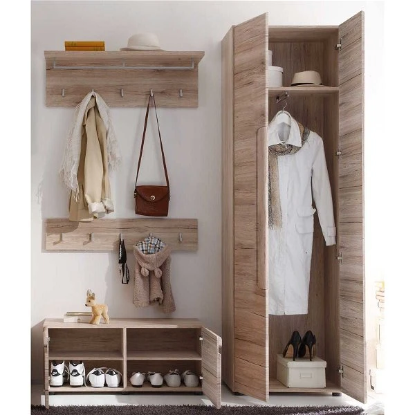 Die Garderobe besteht aus Garderobenschrank, 2 Garderobenboards und Unterteil.