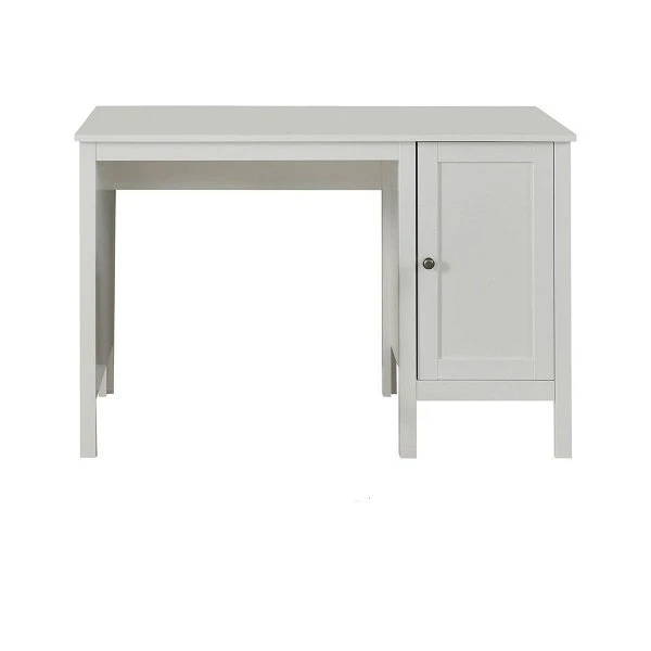 Einfacher und schicker Schreibtisch mit einer Tür und Platz für Schreibutensilien und Unterlagen.