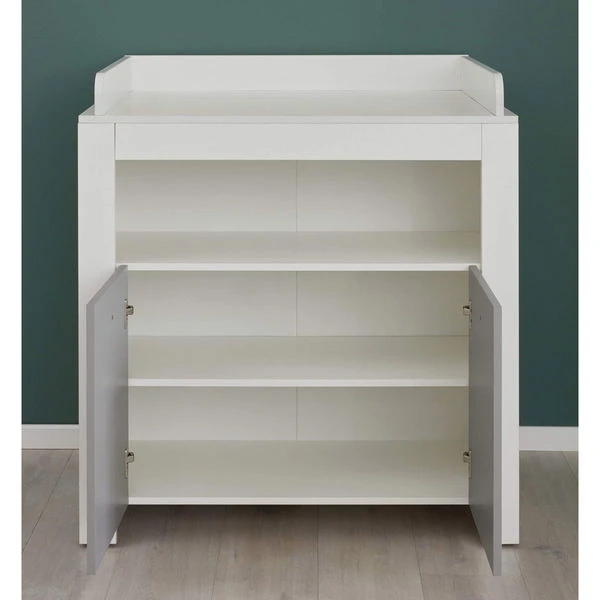 Die Wickelkommode verfügt über 2 Türen und 1 offenes Fach, diese bieten viel Stauraum für alle Hygieneartikel.