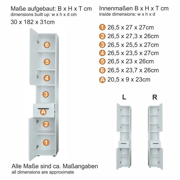 trendteam Skin Hochschrank offenes Fach Weiß Hochglanz