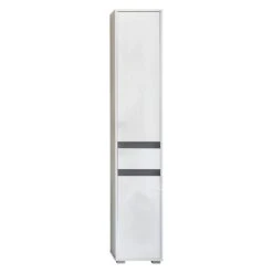 Der trendteam Sol Hochschrank ist eine stilsichere Lösung für besonders viel Stauraum in ausladender Größe. Der Einsatz von Lack in Kombination mit Dekorfolie schafft eine ausgesprochen langlebige Oberfläche. Die weiße Front- und Korpusgestaltung kombiniert mit der Absetzung aus Melamin schafft einen modernen Look, der sich harmonisch in den Raum integriert.