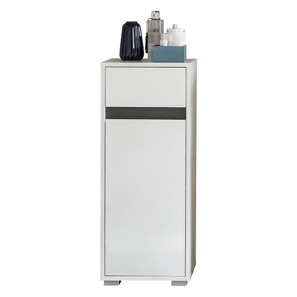 Der trendteam Sol Standschrank beindruckt nicht nur mit seiner stylishen Aufmachung, sondern fügt sich zudem flexibel in Ihre vier Wände ein. Das Design kennzeichnet der weiße Korpus in Kombination mit der Absetzung aus Melamin. Eine ausgezeichnete Robustheit wird durch die Verwendung von Lack sowie Dekorfolie garantiert.