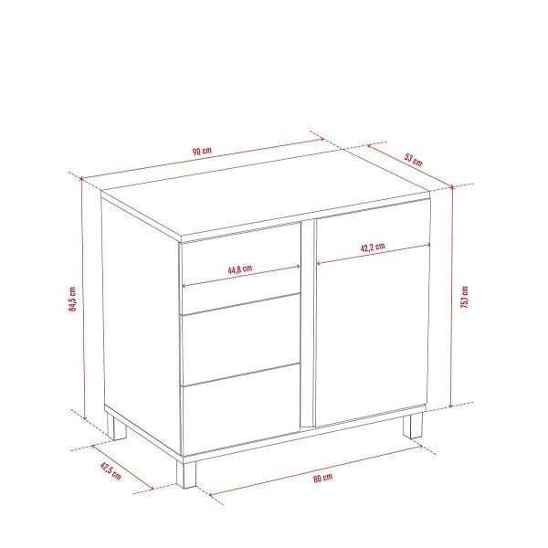 Maße: 90 × 53 × 84,5 cm (B x T x H)