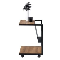 HomeTrends4You Beistelltisch Bruno, Edelstahloptik MDF Dekor Artisaneiche | Metall Schwarz