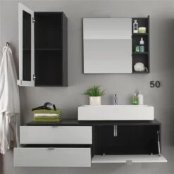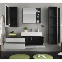 Trendteam Beach Hänge-Waschbeckenunterschrank 140x50x53 Cm Grau/weiß Inkl. Aufsatzwaschbecken